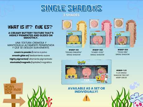 $ 421.00Prix unitaire /IndisponibleSPONGEBOB SQUAREPANTS X BEAUTY CREATIONS - SINGLE SHADOWS
